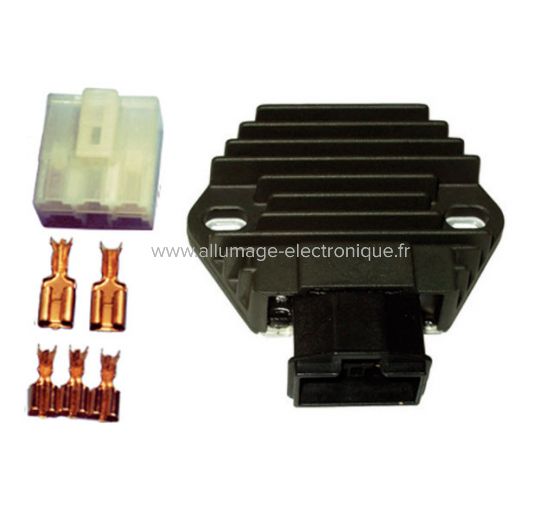 Remplace les régulateur Honda originaux n° 31600-GFM-890 / 31600-KPP-861 / 31600-KFG-860 / 31600-KFG-861 / 31600-KFG-862 / 31600-KBG-008 / 31600-MV4-010 / 31600-MV4-000 / 31600-KGB-901 / 31600-KBR-000 / 31600-KBR-010 / 31600-KY2-702 / 31600-KVK-901 / 31600-KFG-D11 / 31600-KY2-703 / 31600-KY2-701 / 31600-MY7-600 / 31600-MY7-305 / 31600-MT4-008 / 31600-KPJ-670
